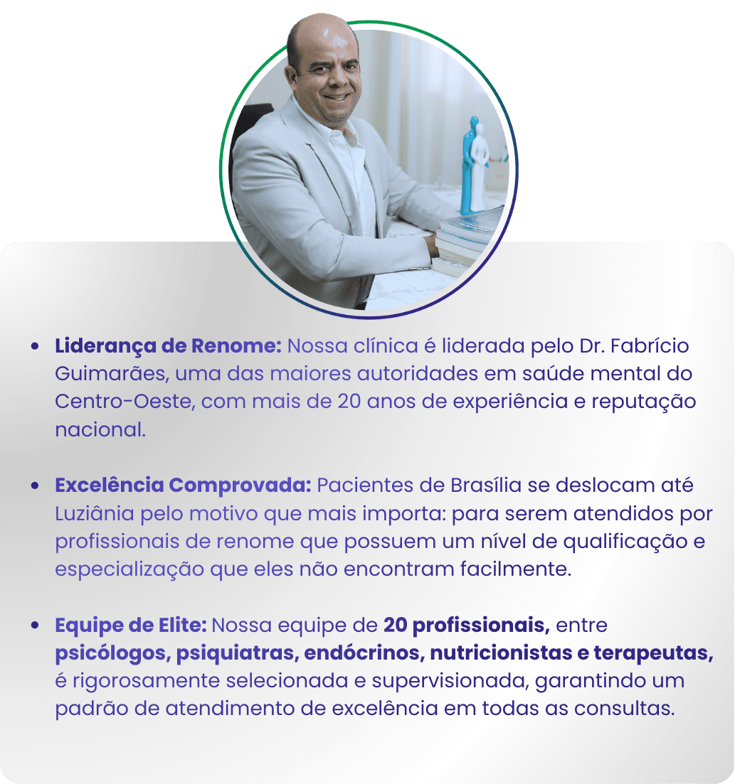 Você tem acesso a uma equipe multidisciplinar de psicólogos, psiquiatras e nutricionistas, garantindo que seu tratamento seja completo (mente e corpo).